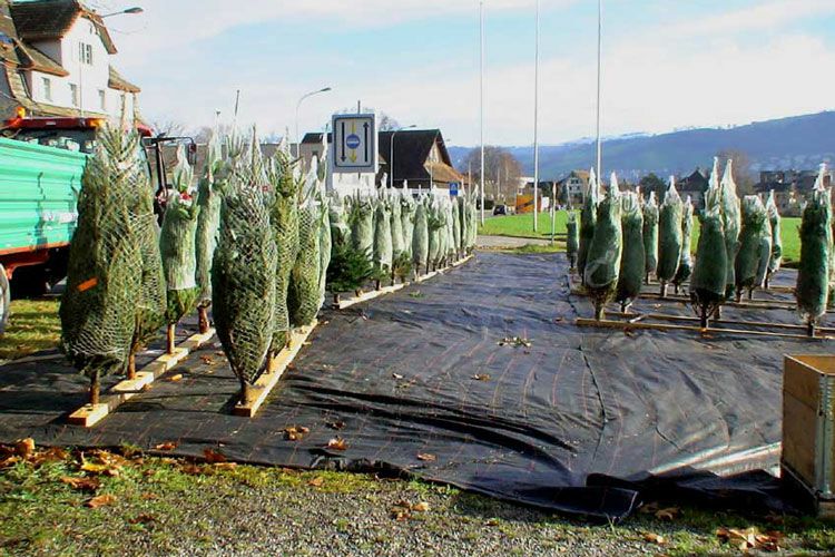 Standsicher für Bäume bis 2,5 m. Eigengewicht 0,48 kg, Maße Platte 100 x 100 mm.