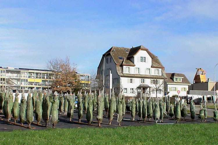Kostengünstige Präsentationsmöglichkeit: Dorn mit Ronde einfach auf Paletten oder Holzbalken schrauben.