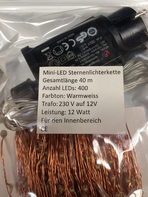 Filigrane Lichterkette mit dünnem Kabel und insgesamt 400 LEDs.